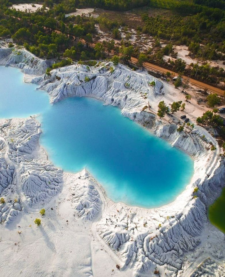 Индонезийн Бинтан аралд орших Цэнхэр нуур нь өөрийн үлэмж цэнхэр өнгийн ус болон шаргал, цагаан өнгийн уулсаараа гайхамшигт үзэмжийг бүрдүүлдэг. Энэ нь Бинтаны хамгийн алдартай байгалийн үзвэрүүдийн нэг бөгөөд зочдыг зурган дээрх шиг үлгэрийн мэт уур амьсгал руу урин дууддаг.